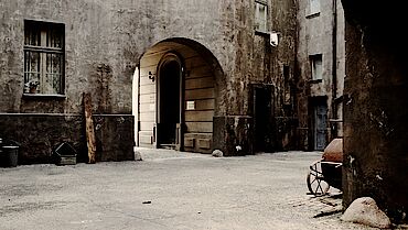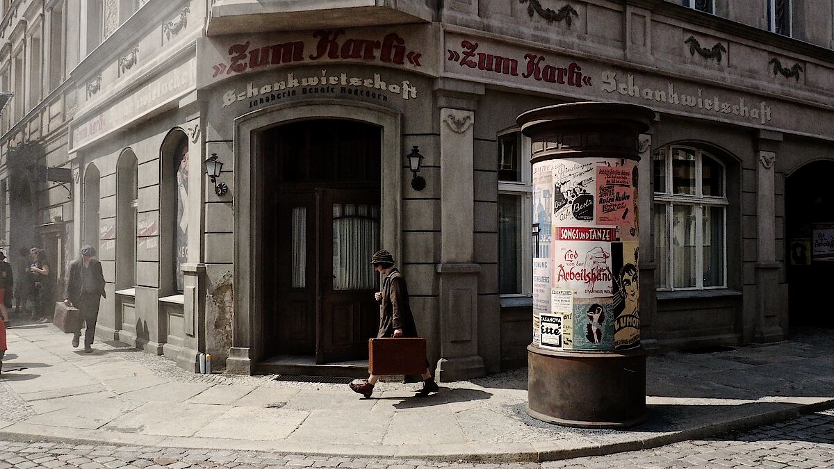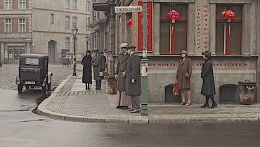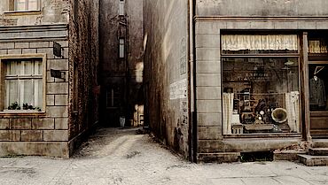 Hanisch: Nur ein Beispiel: es gibt über 600 Fenster, die alle mit Gardinen und Vorhängen bestückt werden mussten. Das haben wir mal planerisch hochgerechnet und gemerkt, dass es für eine Truppe von fast 10 Set Dressern ca. sechs Wochen dauern wird, das auszuführen. Dazu kam schnell die Erkenntnis, dass es eine ausgefuchste Inszenierung und ein richtiges Gestaltungskonzept geben muss, damit es gut aussieht. Können ja nicht irgendwelche Lappen rumhängen! Ingeborg Heinemann ist da ins Spiel gekommen und hat mit einer ganz atemberaubenden Detailliebe und Energie und ihrem hoch motivierten, selbstständigen und künstlerischen Team die Straße praktisch zum Leben erweckt. Sie konnte einem hinterher wirklich erklären, wer hinter jedem einzelnen Fenster wohnt und zuhause ist. Anders geht es auch nicht!